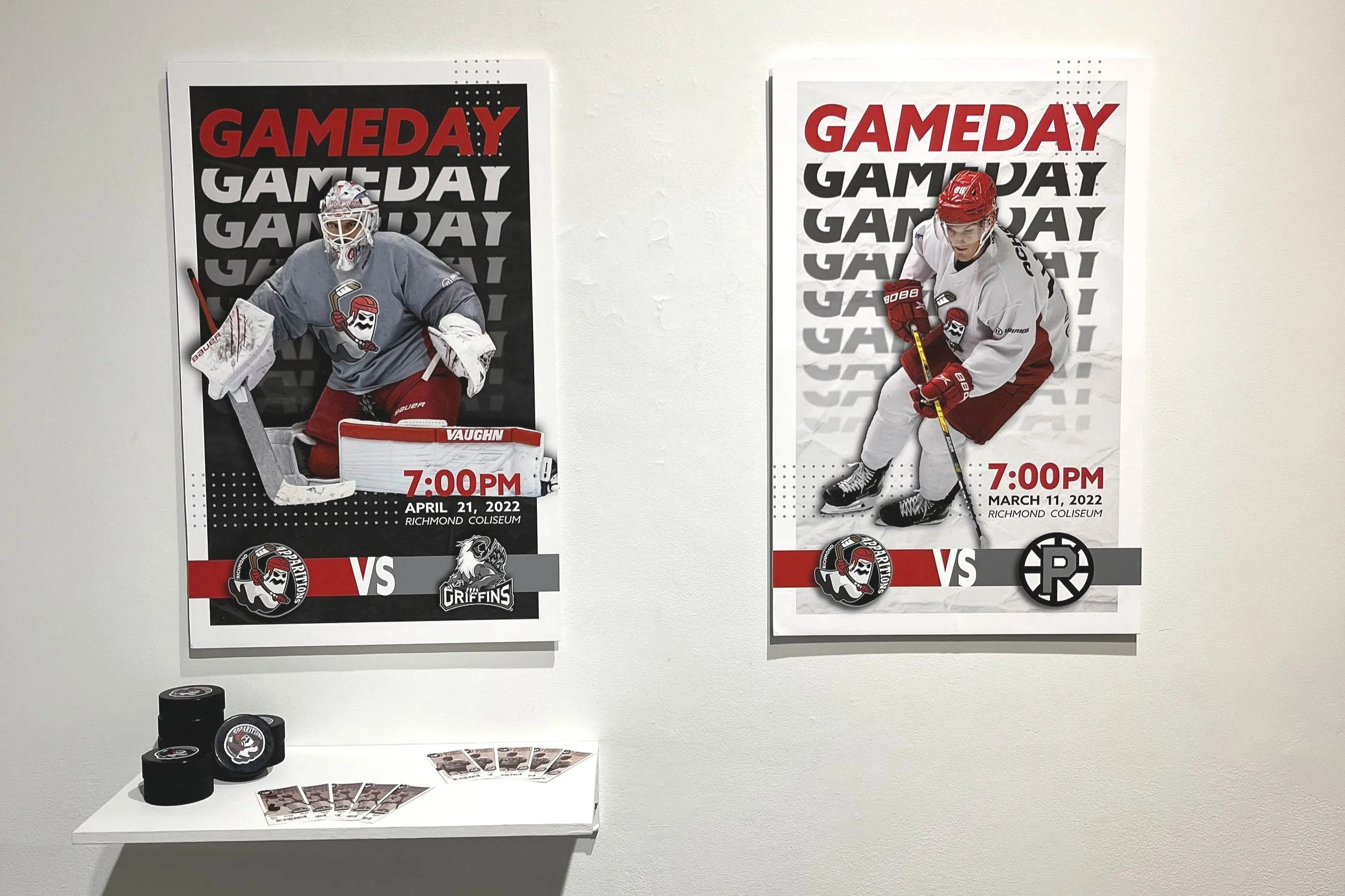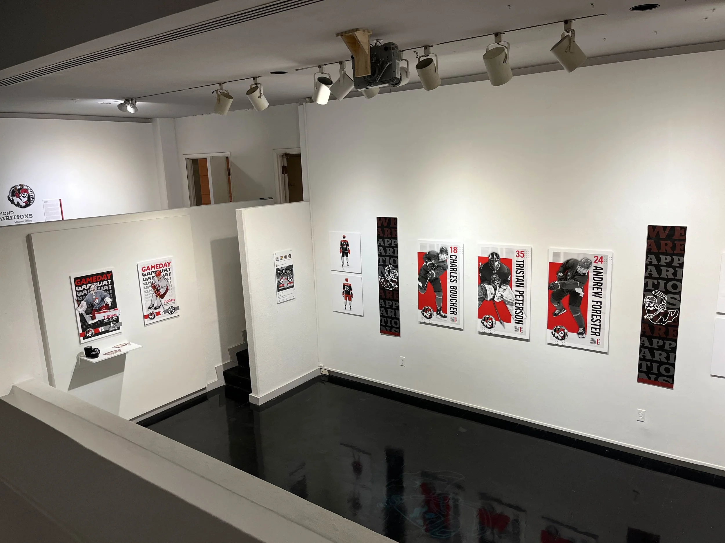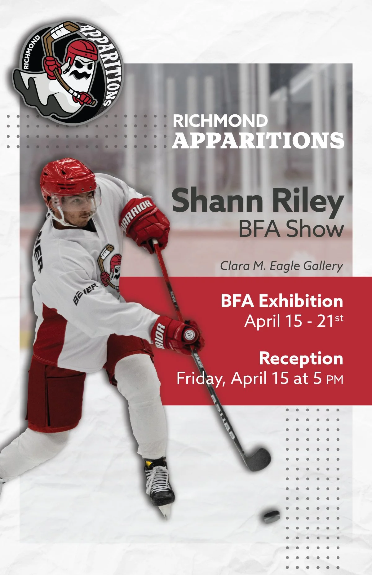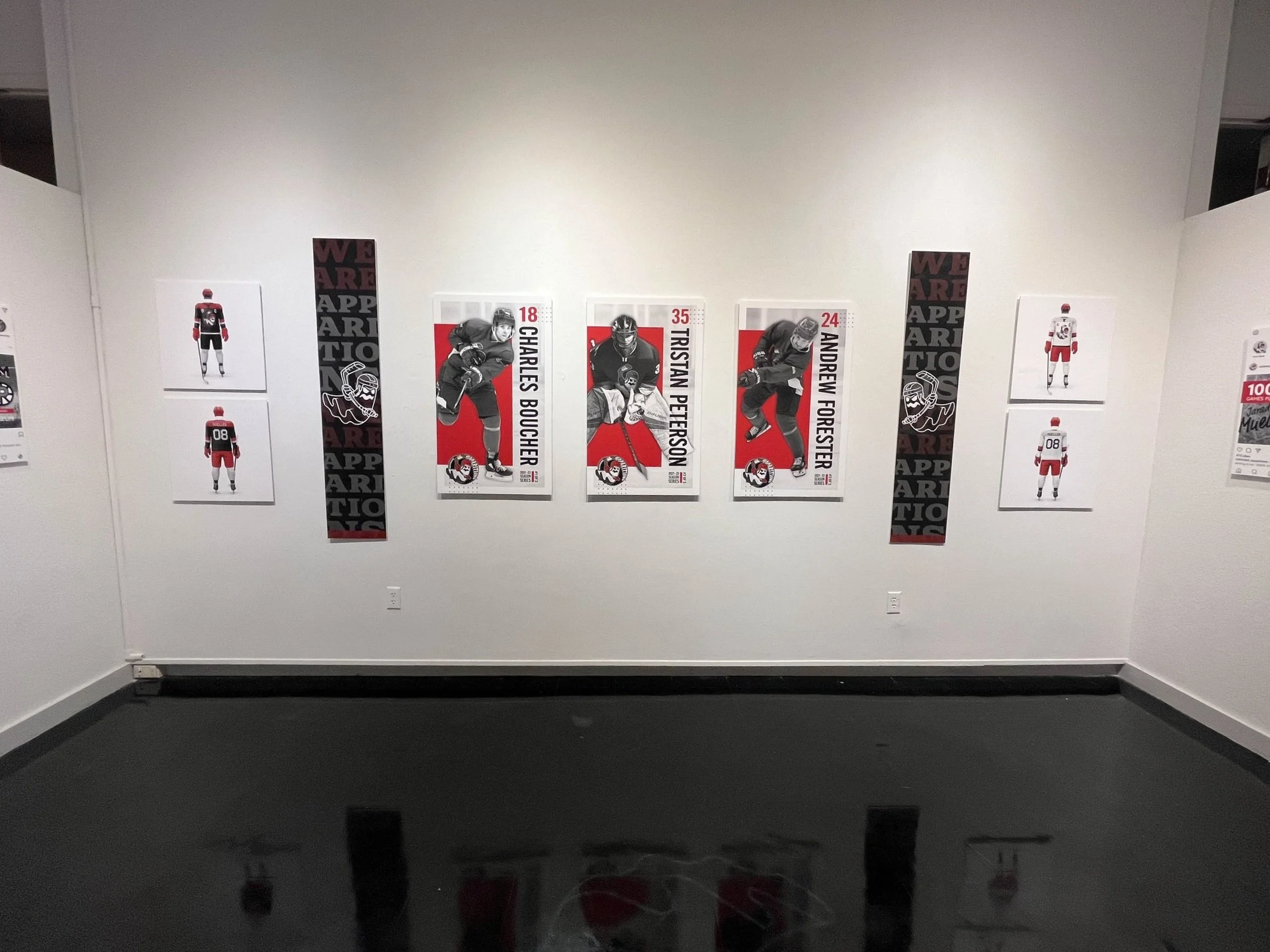 For my senior BFA exhibition, I chose to create my own minor league hockey team. I’m constantly surrounded by sports. Between playing sports and attending many sporting events, sports became a part of my identity. The sport that quickly formed a central part of my identity as a fan was hockey. My father introduced me to hockey after I had already begun my own athletic career; like any sports fan, watching games together, cheering on our favorite teams, and experiencing the excitement was an invaluable experience. By meshing my love for sports and design with the subject of a minor league hockey team, Richmond Apparitions was created.